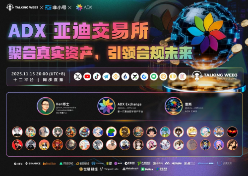 ADX Exchange CMO 麦斯将于 11 月 15 日晚八点,在 TalkingWeb3 与非小号(feixiaohao.ai)的专场直播中,对 ADX 的宏大叙事进行首次深度解构。此次直播将详细阐述 ADX 如何通过合规、流量和创新的经济模型,引领亚洲乃至全球的聚合金融新范式。