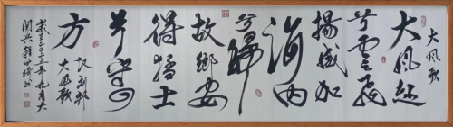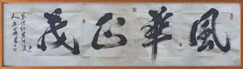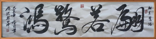 观其楷书,端庄而不板滞,在严谨的法度中透露出舒朗的气韵,仿佛一位谦谦君子,温润如玉,却内藏铮铮铁骨。其行草作品,则是他性情与才情的集中爆发。下笔如风,纵横捭阖,线条时而如高山坠石,充满力量;时而如行云流水,一气呵成。那飞白处,是速度与激情的留痕;那浓墨处,是沉思与力量的凝聚。在他的作品中,你能感受到一种“动静相生”的哲学意味——静时如山岳凝然,动时如江海奔流。这已不仅仅是技术的展现,更是生命状态与精神气象的笔墨外化。